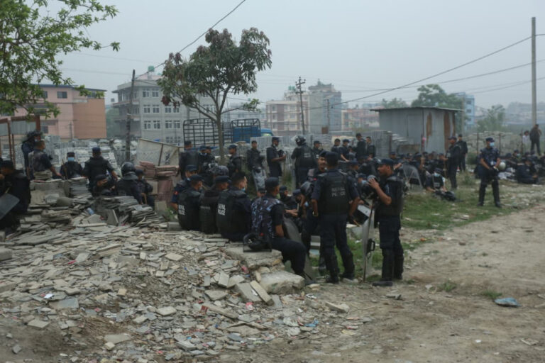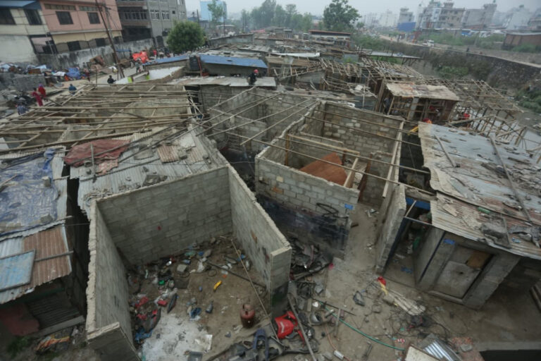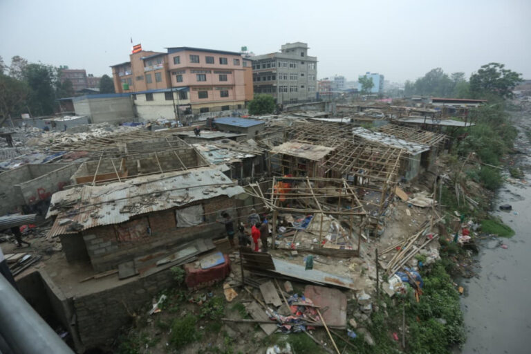 अधिकार क्षेत्र मिचेर बनाइएका संरचना हटाउने भन्दै जिल्ला प्रशासन कार्यालय भक्तपुरले सशस्त्र प्रहरी र नेपाल प्रहरीलाई परिचालन गरी बस्तीमा बल प्रयोग गरेको हो । बस्ती भत्काउनका लागि ठूला डोजर (जेसीबी) हरू तैनाथ गरिएको छ । केही स्थानीय बासिन्दाहरू आफैँले आफ्नो छाप्रोको छाना र बाँसका संरचनाहरू भत्काउँदै गरेको दृश्यले पीडितहरूको पीडा झल्काउँछ ।