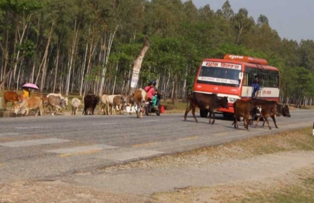 ती सबैजसो सडकमा पशुचौपायको कारण दुर्घटनाको जोखिम छ ।