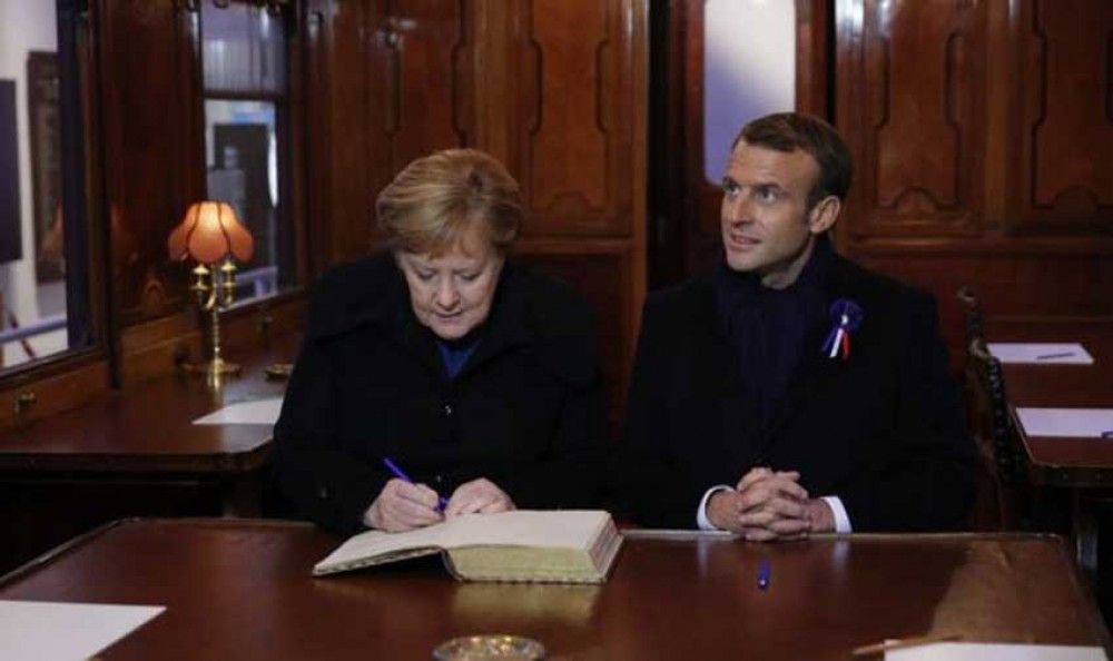 सन् १९१८ मा युद्ध अन्त्य भएको सम्झौता एउटा रेलमा गरिएझैँ दुई नेताले प्रतीकात्मक रूपमा रेलमा बसेर स्मृति पुस्तिकामा हस्ताक्षर गरे । मर्केल र म्याक्रोंले फ्रान्स र जर्मनीबीच मेलमिलाप दर्शाउने एउटा शिलालेखको अनावरणसमेत गरे ।