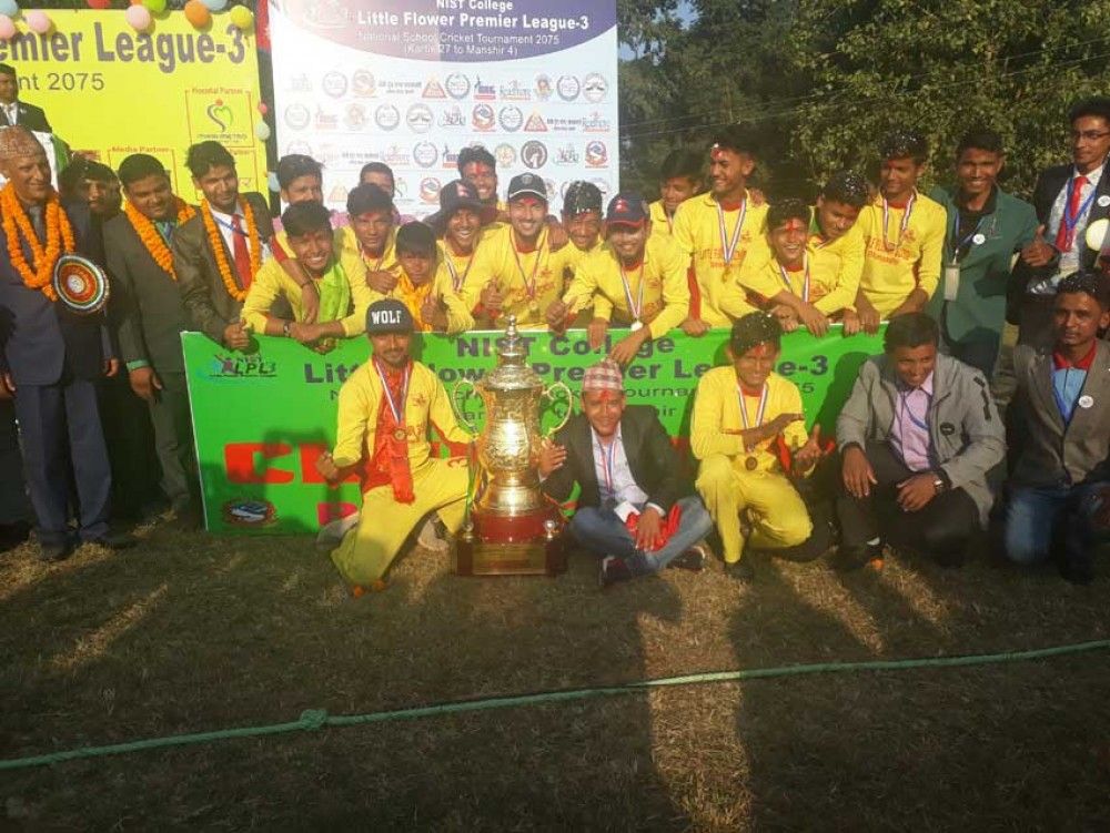 कैलाली, मंसिर ४ । निस्ट कलेज लिटिल फ्लावर प्रिमियर लिग टी–२० क्रिकेटको तेस्रो संस्करणको उपाधि घरेलु टोली लिटिल फ्लावर बोर्डिङ स्कुलले जितेको छ ।