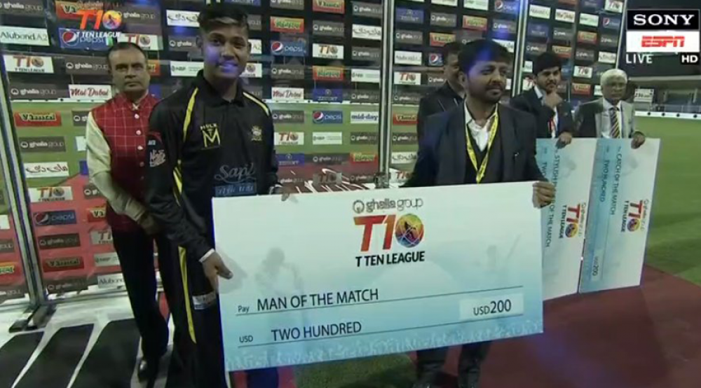 गएराति सम्पन्न खेलमा सन्दीपले २ ओभर बलिङ गर्दै तीन विकेट लिएर १७ रनमात्र दिए । १०–१० ओभरको यो खेलमा एउटा बलरले बढीमा दुई ओभरमात्र बलिङ गर्न पाउँछ ।