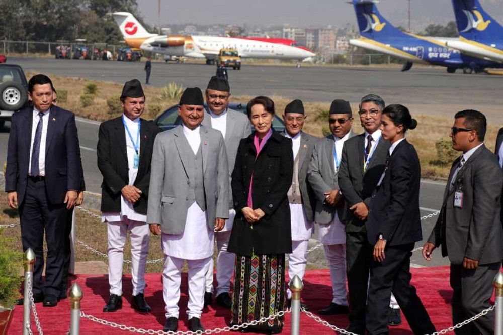 Kathmandu, Nov 29 (RSS): State Counsellor of the Republic of the Union of Myanmar Daw Aung San Suu Kyi has arrived Kathmandu for official goodwill visit to Nepal at the invitation of Prime Minister KP Sharma Oli.