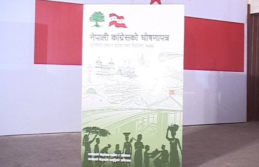 नेपाली कांग्रेसका पार्टी सभापति एवं प्रधानमन्त्री शेरबहादुर देउवा, वरिष्ठ नेता रामचन्द्र पौडेल, महामन्त्री डा.शशांक कोइराला एवं नेपाली कांग्रेस, घोषणापत्र तयारी समितिका संयोजक महेश आचार्यले मंगलबार संयुक्तरुपमा आयोजित घोषणापत्र सार्वजनिकीकरण समारोहमा सो कुरा बताएका हुन् ।