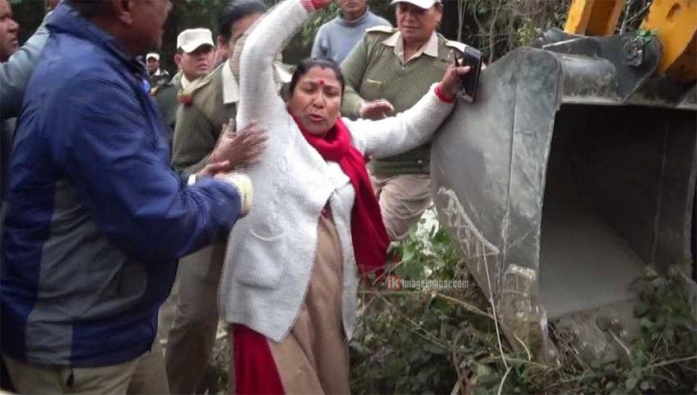 परियारले डोजरको ‘बकेट’मासमेत बसेर घर भत्काउने कार्य रोक्नका लागि प्रयास गरेपनि उनको प्रयास सफल भएको थिएन ।