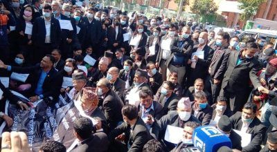 काठमाडौं, कात्तिक २६ । नेपाल बार एशोसियसनले प्रधानन्यायाधीश चोलेन्द्रशमशेर जबरालाई सर्वोच्च अदालत प्रवेशमा रोक लगाउँदै मूल गेटमा धर्ना दिएको छ । बारका पदाधिकारीहरुलाई सर्वोच्च अदालत परिसरमै बिहीबार प्रहरी हस्तक्षेप गरेको
