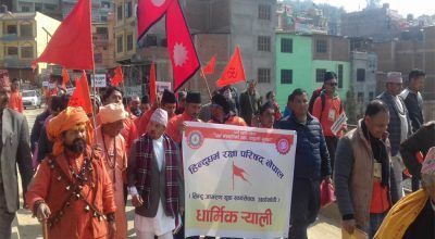 अर्घाखाँची, माघ २४ । सनातन बैदिक धर्म संस्कृति रक्षाका लागि भन्दै अर्घाखाँचीको सदरमुकाम सन्धिखर्कमा र्याली आयोजना गरिएको छ । हिन्दुधर्म रक्षा परिषद्ले बाजागाजासहित आयोजना गरेको र्यालीले बजार परिक्रम गरेको थियो ।