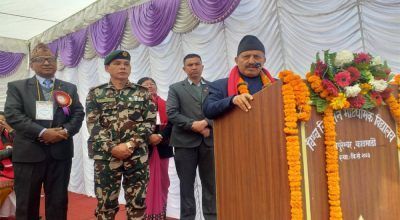 काठमाडौं, माघ १९ । शिक्षा, विज्ञान तथा प्रविधिमन्त्री गिरिराजमणि पोखरेलले नेपाली भाषालाई कमजोर बनाउने गरी अङ्ग्रेजी भाषाको प्रयोगमा जोड दिन नहुने बताएका छन् । विश्व निकेतन माध्यमिक विद्यालय काठमाडौंको ७४औँ वार्षिकोत्सव