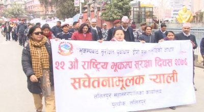 काठमाडौं, माघ २ । भूकम्प सुरक्षा दिवसमको अवसरमा ललितपुरमा प्रभातफेरी निकालिएको छ । ललितपुर महानगरपालिका र जिल्ला प्रशासन कार्यालय ललितपुरले संयुक्त आयोजना गरेको प्रभातफेरीमा विभिन्न संघ संस्थाका प्रतिनिधिलगायत सर्वसाधरणको सहभागिता