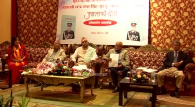 काठमाडौं, चैत २८ । पूर्वराष्ट्रपति डा. रामवरण यादवले अफ्ठेरो परिस्थितिमा सेनालाई संस्थागत्रुपमा लोकतान्त्रिक मार्गमा डोर्याउन पूर्वप्रधानसेनापति छत्रमानसिंह गुरुङको महत्वपूर्र्ण योगदान रहेको बताएका छन् । पूर्वप्रधान सेनापति गुरुङको आत्मकथा ‘जनताको छोरो’को