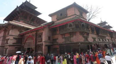 काठमाडाैं । प्रत्येक वर्षकाे महानवमी पर्वका अवसरमा मात्र खुला गरिने हनुमानढोका दरबार क्षेत्रस्थित तलेजु भवानीको मन्दिरमा बुधबार बिहानैदेखि भक्तजनहरु पूजा आराधनाका लागि पुगेका छन् । हनुमान ढोकास्थित तलेजु भवानीको मन्दिर