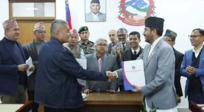 काठमाडाैं । नेपाली कांग्रेसभित्रको आन्तरिक विवाद निर्वाचन आयोगको कार्यालयमा शक्ति प्रदर्शनको रूपमा प्रकट भएको छ ।पार्टीको संस्थापन पक्ष शेरबहादुर देउवा नेतृत्व र विशेष महाधिवेशन पक्ष गगन थापा नेतृत्व दुवैले एक-अर्काविरुद्ध