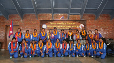 काठमाडाैं। श्रीलंका र भारतमा संयुक्त रूपमा आयोजना भएको नेत्रहीन महिला टी-२० विश्वकपको पहिलो संस्करणमा उपविजेता बनेको नेपाली महिला टोली स्वदेश फर्किएको छ। साेही टोलीलाई नेपाल क्रिकेट संघ (क्यान) का पदाधिकारीहरुले