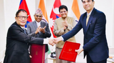 काठमाडाैं । नेपाल र भारतबीच पारवहन सन्धिको प्रोटोकल संशोधन भएको छ। उद्योग, वाणिज्य तथा आपूर्ति मन्त्री अनिलकुमार सिन्हा र भारत सरकारका वाणिज्य तथा उद्योगमन्त्री पीयूष गोयलबीचको दुई पक्षीय भेटपछि प्रोटोकल