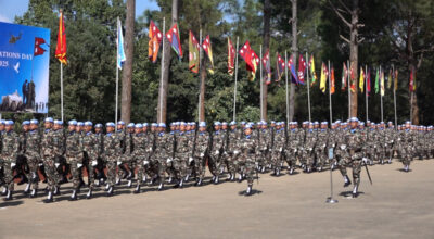 काठमाडाैं । नेपाली सेनाले संयुक्त राष्ट्रसंघ (युएन) दिवस श्री वीरेन्द्र शान्ति कार्य तालिम केन्द्र पाँचखालमा विशेष कार्यक्रमको आयोजना गरी भव्य रूपमा मनाएको छ। प्रधानसेनापति अशोकराज सिग्देलको प्रमुख आतिथ्यमा बिहीबार विशेष
