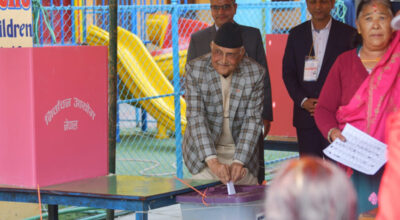 काठमाडाैं । नेकपा एमालेका अध्यक्ष केपी शर्मा ओलीले मतदान गर्नुभएको छ । बिहीबार बिहान अध्यक्ष ओलीले भक्तपुरको बालकोटस्थित महेन्द्र शान्ति मावि केन्द्रमा पुगेर मतदान गर्नुभएको हो । उहाँ झापा-५ बाट