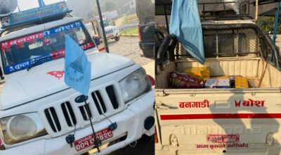 काठमाडाैं । सल्यानमा चुनावी प्रचारका लागि प्रयोग भएको जिपमा चामल र मदिरा राखिएको अवस्थामा फेला परेको छ। बनगाड–कुपिण्डे नगरपालिका–१ सल्लीबजारमा राष्ट्रिय स्वतन्त्र पार्टी (रास्वपा) को झण्डा प्रयोग भएको गाडीमा साेमबार
