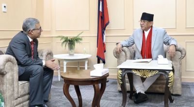 काठमाडाैं । प्रधानमन्त्री पुष्पकमल दाहाल ‘प्रचण्ड’ सँग नेपालका लागि बङ्गलादेशका राजदूत सलाहुद्दिन नोमन चौधरीले शिष्टाचार भेटवार्ता गर्नुभएको छ । प्रधानमन्त्री तथा मन्त्रिपरिषद्को कार्यालयमा आज भएको भेटमा नेपाल र बङ्गलादेशबीचको सम्बन्ध