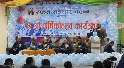 भक्तपुर । नेपाल मजदुर किसान पार्टीका अध्यक्ष नारायणमान बिजुक्छेँले नेपाली कांग्रेसले प्रतिपक्षी दलको भूमिका निर्वाह गर्न नसकेको बताउनु भएको हो । आज रफत सञ्चार क्लब भक्तपुरको १३ औ वार्षिकोत्सव समारोहको
