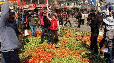 चितवन । चितवनका तरकारी उत्पादक किसानहरुले नारायणगढको पुल्चोकमा तरकारी फालेर विरोध जनाएका छन् । स्वदेशी तरकारीले उत्पादन अनुसारको लागत नपाएको भन्दै चितवनका तरकारी उत्पादक किसानहरुले नारायणगढको पुल्चोकमा तरकारी फालेर विरोध