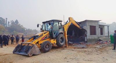 काठमाडाैं । धरान उपमहानगरले आइतबार अवैध संरचनामाथि डोजर चलाएकाे छ । सार्वजनिक जमिन अतिक्रमण गरेर बनाइएको घरमाथि उपमहानगरले डोजर चलाएकाे हाे । उपमहानगरले घर भत्काउनु अघि २ पटक घर नबनाउनन