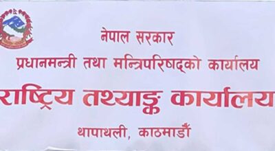 काठमाडाैं । मुलुकको अर्थतन्त्रको आकार ५४ खर्ब बराबर पुगको छ । राष्ट्रिय तथ्यांक कार्यालयले आज सार्वजनिक गरेको पछिल्लो तथ्यांक अनुसार नेपालको अर्थतन्त्रको आकार ५३ खर्ब ८१ अर्ब पुग्ने प्रारम्भिक अनुमान