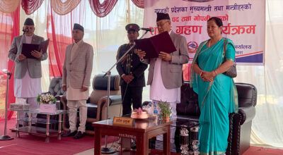 काठमाडाै् । गण्डकी प्रदेशका नवनियुक्त मुख्यमन्त्री सुरेन्द्रराज पाण्डेसहित दुई बिनाविभागीय मन्त्रीले पद तथा गोपनीयताको शपथ लिनुभएको छ । आज प्रदेश प्रमुखको निवासमा आयोजित समारोहमा प्रदेश प्रमुख पृथ्वीमान गुरुङले मुख्यमन्त्री र