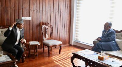 काठमाडाैं । प्रधानमन्त्री पुष्पकमल दाहाल ‘प्रचण्ड’ र राष्ट्रियसभाका अध्यक्ष गणेशप्रसाद तिमिल्सिनाबीच भेटवार्ता भएको छ । प्रधानमन्त्री निवास बालुवाटारमा आज भएको भेटवार्तामा राष्ट्रियसभा अध्यक्षले रूसको सङ्घीय संसद् उपल्लो सदनको निमन्त्रणामा भएको