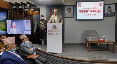 काठमाडौं, बैशाख १९ । नेपाल कम्युनिष्ट पार्टी (नेकपा)का अध्यक्ष पुष्पकमल दाहालले लकडाउनका कारण समस्यामा परेका निम्न वर्गीय श्रमजिवी जनताका लागि विशेष राहत प्याकेज ल्याउन सरकारसँग माग गरेका छन् । अन्तर्राष्ट्रिय