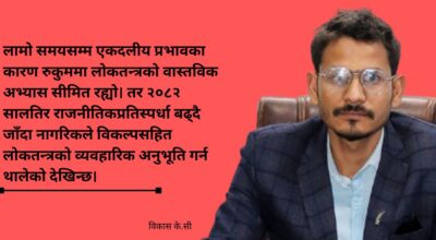 रामेछाप । रामेछापमा कर्मचारी सहित निर्वाचनका सामाग्री बोकेको गाडी दुर्घटना भएको छ । दुर्घटनामा परी एक जनाको मृत्यु भएको छ भने ६ जना घाइते भएका छन् । रामेछाप नगरपालिका २ देउरालीको सितलादेवी मावि र वडा नं ३ साँघुटारको वडाकार्यालय मतदान केन्द्रका कर्माचारी र निर्वाचन सामाग्री लिएर गएको निसान कम्पनीको गाडी देउरालीको मतदान केन्द्रमाबाट ब्याक गर्ने…