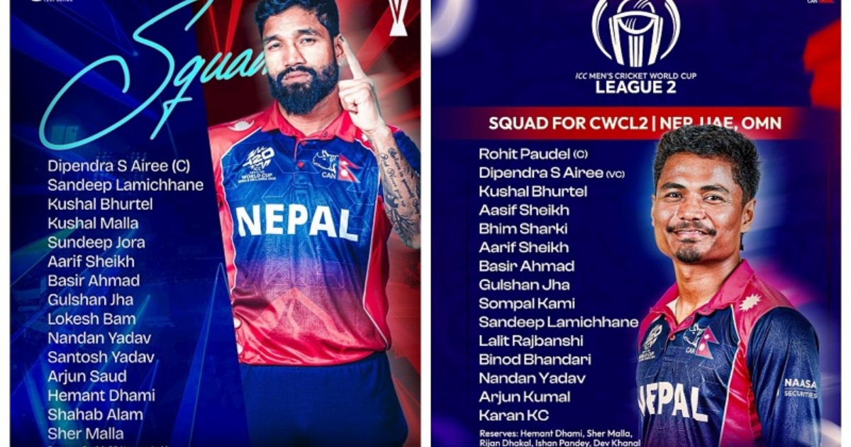काठमाडौं । घरेलु मैदानमा हुने संयुक्त अरब इमिरेट्स (यूएई) सँगको दुई खेलको टी–२० अन्तर्राष्ट्रिय शृङ्खला र आईसीसी क्रिकेट विश्वकप लिग–टु शृङ्खलाका लागि नेपाली टोलीकाे घोषणा भएको छ । नेपाल क्रिकेट सघ (क्यान) ले शुक्रबार टी–२० शृङ्खलाका लागि दीपेन्द्रसिंह ऐरी र लिग–टु शृङ्खलाका लागि रोहित पौडेलको कप्तानीमा १५ सदस्यीय टोली घोषणा गरेको हो । अब नेपालको टी–२०…