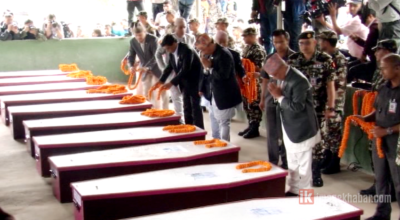 काठमाडौं, असार १० । अफगानिस्तानको राजधानी काबुलमा भएको आक्रमणमा गम्भीर घाइते भई उपचारका क्रममा निधन भएका च्याङ्वा तामाङको शव नेपाल ल्याइएको छ । च्याङ्वाको शव शुक्रबार बिहान काठमाडौं ल्याइएको हो । सोमबार काबुलमा तालिवानले गरेको आत्मघाती आक्रमणमा घाइते भएका नुवाकोटका च्याङ्वाको उपचारका क्रममा निधन भएको थियो । आतंकवादी आक्रमणमा च्याङ्वासहित १३ नेपालीको मृत्यु भएको थियो…