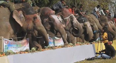 चितवन, पुस १६ । चितवनमा हात्तीहरुलाई वनभोज खुवाइएको छ । सधैजसो पर्यटकलाई घुमाउन व्यस्त हुने