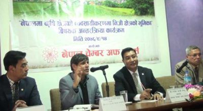 काठमाडौं, पुस १४ । नेपाल उद्योग परिसंघ र नेपाल बैंकर्स संघबीच सहकार्यको समझदारी भएको छ । परिसंघ र संघबीच निजी लगानी प्रवर्द्धनमार्फत् आर्थिक विकासमा सहकार्य गर्न समझदारी भएको हो । परिसंघमा आयोजित कार्यक्रममा परिसंघका अध्यक्ष