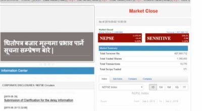 काठमाडौं । सोमबार पनि शेयर बजारमा वियरिष ट्रेण्ड कायमै रह्यो । कारोबार शुरु भएदेखि ओरालो