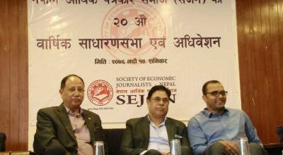 काठमाडौं, भदौ १४ । नेपाल आर्थिक पत्रकार समाज (सेजन)को नयाँ अध्यक्षमा भीमप्रसाद गौतम निर्वाचित भएका छन् । सेजनको शनिबार राजधानीमा भएको २०औं वार्षिक साधारणसभा एवं अधिवेशनमा अर्का प्रत्यासी मोदनाथ ढकाललाई पछि पार्दै गौतम अध्यक्षमा निर्वाचित