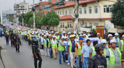 काठमाडौं । नेपाल निर्माण व्यवसायी महासंघको दोस्रो चरणको आन्दोलन अन्र्तगत बुधवार राजधानीमा देशभरका निर्माण व्यवसायीहरूले