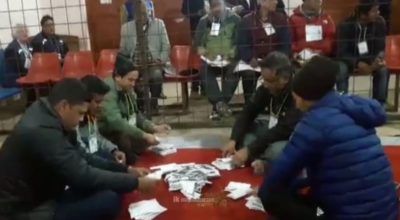 प्रारम्भिक नतिजाअनुसार पोखरेलको ६८० र नेपाली कांग्रेसका उम्मेदवार डा. प्रकाशशरण महतको २९८ मत रहेको छ । निर्वाचन क्षेत्र नम्बर–५ र ७ को सहकारी विकास विभागको तालिम केन्द्र बानेश्वरमा मतगणनाका जारी छ । रासस