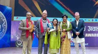काठमाडौँ । छोटो समयमै नेपाली गीत सङ्गीत क्षेत्रमा सर्वाधिक चर्चा कमाउन सफल गायिका रेखा पोखरेलले काठमाडौँमा सम्पन्न ‘नवौँ राप्ती म्युजिक अवार्ड ‘समारोहबाट उत्कृष्ट नव गायिका विधाबाट अवार्ड हात पार्न सफल