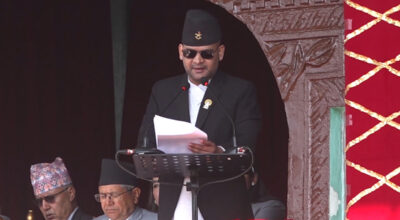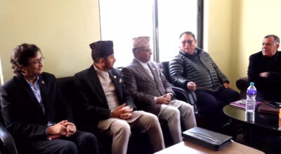 काठमाडाैं। नेपाली कांग्रेसका नेता प्रदीप पौडेलले मुलुकको विद्यमान संकट समाधानका लागि निर्वाचनमा जाने पार्टीको संस्थागत निर्णय कार्यान्वयन गरेर अघि बढ्नुको विकल्प नरहेको बताउनुभएको छ। पार्टीभित्र प्रतिनिधि सभा पुनःस्थापनाका लागि सांसदहरूको हस्ताक्षर अभियान चलिरहेकाे समयमा नेता पौडेलले निर्वाचनको वातावरण बनाउने कुरालाई प्राथमिकता दिनुपर्नेमा जोड दिनुभएको हो। सञ्चारकर्मीसँग कुरा गर्दै उहाँले वर्तमान राजनीतिक गतिरोधको निकास निर्वाचनबाट मात्र…