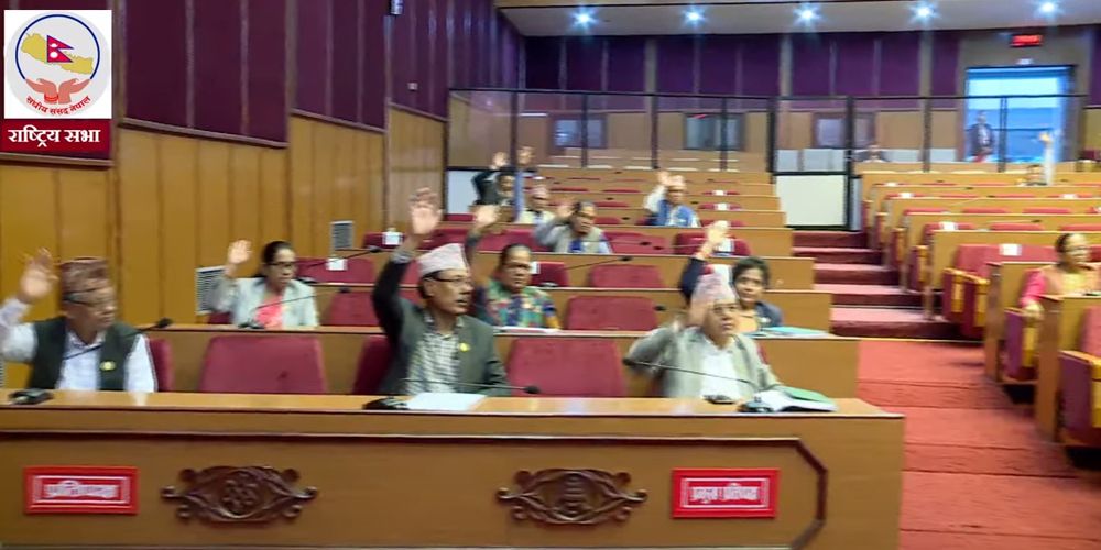 माठमाडौं । विधायन सम्बन्धि विधेयक, २०८० राष्ट्रिय सभाबाट पारित भएको छ । बिहीबार बसेको राष्ट्रिय सभाको दोस्रो बैठकमा प्रस्तुत भएको विधेयक सर्वसहमतिले स्वीकृत भएको हो । बैठकमा राष्ट्रिय सभा अध्यक्ष गणेशप्रसाद तिमिल्सिनाले विद्यायन सम्बन्धि विधेयक, २०८० माथि संसदमा विचार गरियोस् भन्ने सरकारले पेश गरेको विधेयक सर्वहमतिले पास भएको घोषणा गर्नुभयो । विद्यायन सम्बन्धि विधेयक २०८०…