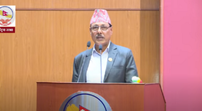 काठमाडौं । राष्ट्रिय सभा अध्यक्ष गणेशप्रसाद तिमिल्सिनाले संविधान अनुुसार बन्न बाँकी कानूनहरुको तर्जुमा गरी प्राथमिकताको आधारमा संसदमा पेश गर्न सरकारलाई निर्देशन दिनुभएको छ । सोमबारको राष्ट्रिय सभा बैठकबाट अध्यक्ष तिमिल्सिनाले संविधान अनुसार बन्न बाँकी कानूनहरुको तर्जुमा गरी प्राथमिकताको आधारमा संसदमा पेश गर्न सरकारलाई निर्देशन दिनुभएको हो । उहाँले संविधान अनुसार बन्न बाँकी कानूनहरुको अध्ययन प्रतिवेदन…