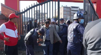 काठमाडौं ।नेकपा एमालेको ११ औँ राष्ट्रिय महाधिवेशन स्थलमा पार्टी अध्यक्ष केपी शर्मा ओली पुगेका छन्। अध्यक्ष ओली तीनवटा गाडीको सुरक्षा स्कर्टिङसहित महाधिवेशनस्थल प्रवेश गरेका हुन्। अध्यक्ष ओली कार्यक्रमस्थल प्रवेश गरेसँगै नेता तथा कार्यकर्ताहरूले नाराबाजी र ताली बजाउँदै भव्य स्वागत गरेका छन्। महाधिवेशनस्थलमा पार्टीका वरिष्ठ उपाध्यक्ष ईश्वर पोखरेल, उपाध्यक्ष, महासचिव, उपमहासचिव तथा अन्य पदाधिकारीहरू यसअघि नै…