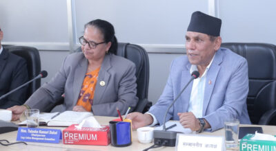 काठमाडाैं। पहिलो संविधान सभाका ४ सभासदसहितको टोलीले निर्वाचन कानूनमा ५० प्रतिशत महिला उम्मेदवार सुनिश्चित गर्न माग गर्दै प्रधानमन्त्री सुशीला कार्कीसँग भेटवार्ता गरेकाे छ। डा. बिन्दा पाण्डे, रेणु चन्द, अमृता थापामगर र सुनिलबाबु पन्त लगायतको टोलीले प्रत्यक्ष निर्वाचन प्रणालीतर्फ नै ५० प्रतिशत महिला उम्मेदवार उठाउन कानूनमै सुनिश्चित गर्नुपर्ने माग गरेको हो। संविधानले समानुपातिक समावेशीको सिद्धान्त अवलम्बन…