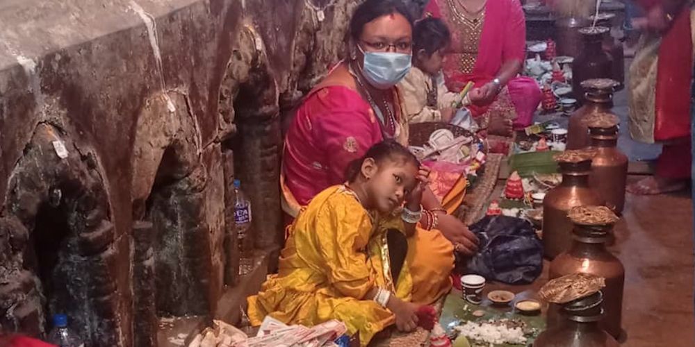 काठमाडौं । असनका ज्यापु समुदायका बाल बालिकालाई अष्टमातृका, गणेश र भैरवको रुपमा तान्त्रिक पद्धतिबाट पूजा गरी कुमा नकिगु विशेष पूजा सम्पन्न गरिएको छ । यसदिन दाँत ननिस्केका र कपाल नकाटेका बालबालिकालाई तन्त्र साधना गरेर पूजा गर्ने परम्परा छ । पूजामा चाँदीको नरमुण्ड भएको माला बालबालिकालाई लगाइदिने र ८४ ब्यञ्जन सहितको विशेष तान्त्रिक परिकार चढाइन्छ ।…
