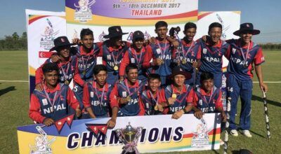 प्रधानमन्त्री देउवाले नेपालले उपाधि जितेकामा खुशी व्यक्त गर्दै विजेता खेलाडी बधाई दिएको उनका निजी सचिव बद्रीप्रसाद तिवारीले बताए । उनका अनुसार प्रधानमन्त्री देउवाले पछिल्लो समयमा नेपाली क्रिकेट खेलाडीले विविध चुनौतीबीच प्राप्त गरेको सफलता प्रशंसायोग्य भएको उल्लेख गरेका थिए । थाइल्यान्डको टेर्डथाई क्रिकेट मैदानमा आइतबार भएको फाइनल खेलमा नेपालले सिंगापुरलाई ७१ रनले पाखा लगाउँदै उपाधि जितेको…