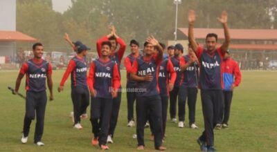 अबुधाबीको शेख जायद रंगशालामा शुक्रबार भएको खेलमा नेपाल ६३ रनले पराजित भयो । १९६ रनको चुनौती पछ्याएको नेपालले ४२ ओभर २ बल क्रिजमा टिकेर १३२ रनमात्र बनाउन सक्यो । ज्ञानेन्द्र मल्लले ४२ रन बनाएको इनिङ्समा चार नेपाली खेलाडीले अंकको खातासमेत खोल्न सकेनन् । यसअघि, पहिले ब्याटिङ गरेको युएईले अद्दान मुफ्तीको १०४ रनको मद्दतले ४९ ओभर…