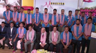 काठमाडौं, साउन ३ । नेपाली राष्ट्रिय क्रिकेट टोली बिहीबार युरोप भ्रमणमा निस्किएको छ । बिहीबार बिहान साढे ९ बजे कतार एअरवेजको उडानबाट टोली इंग्ल्यान्डतर्फ लागेको हो । इंग्ल्यान्डको लड्र्समा हुने त्रिकोणात्मक क्रिकेट शृंखला र नेदरल्यान्ड्सविरुद्धको पहिलो एक दिवसीय अन्तर्राष्ट्रिय क्रिकेट खेल्न नेपाली टोली त्यसतर्फ गएको हो । काठमाडौंमा बुधबार एक कार्यक्रम गरी खेलाडीलाई औपचारिक बिदाइ…