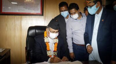 गृहमन्त्री बालकृष्ण खाँण र अर्थमन्त्री जनार्दन शर्माले सिंहदरबारसिथत आ–आफ्ना मन्त्रालय पुगेर कार्यभार सम्हाल्नुभएको हो ।