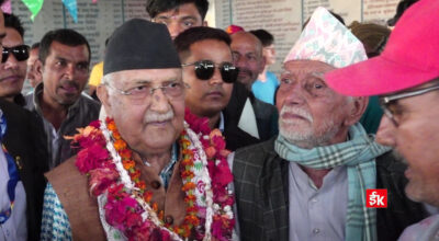 काठमाडाैं । नेकपा एमालेका अध्यक्ष तथा पूर्व प्रधानमन्त्री केपी शर्मा ओली आफ्नो निर्वाचन क्षेत्र झापा निर्वाचन क्षेत्र नम्बर ५ मा चुनावी अभियानलाई तिब्र पार्दै जनताको घरदैलोमा पुग्नुभएको छ । आसन्न