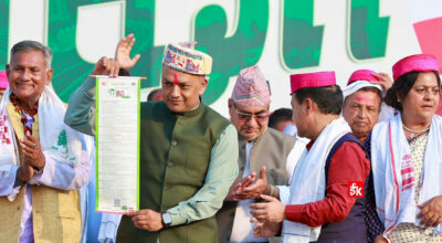 काठमाडौं । नेपाली कांग्रेसले आगामी निर्वाचनका लागि प्रतिज्ञापत्र सार्वजनिक गरेको छ । जनकपुरधाममा आज आयोजित चुनावीसभाबाट सभापति गगन थापा र उपसभापति विश्वप्रकाश शर्माले प्रतिज्ञापत्र सार्वजनिक गर्नुभएको हो । १० बुँदे